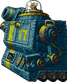 After destroying the first robot, Amadeus will mount on his second machine. This robot will attack by opening its front and firing multiple rounds from its mini-guns, sending out a buzz saw, and launching satellite drones which attack by firing energy projectiles.